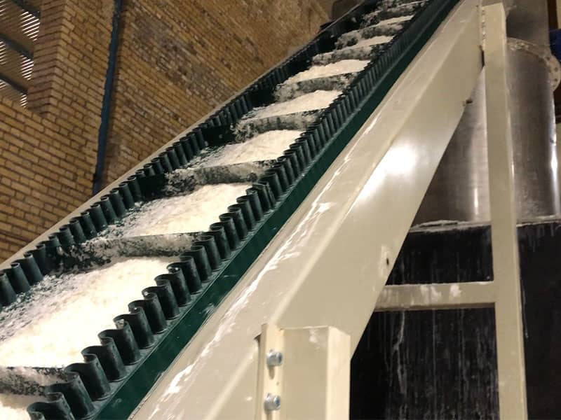 در این پروژه مواد جهت کیسهگیری، سود سوزآور است. این ماده در صنعت پتروشیمی، صنایع غذایی، صنایع مواد شوینده و… کاربرد فراوان دارد. این ماده بسیار خورنده است به این جهت از تجهیزات استیل مانند لودسل و بلندر استیل استفاده شده است. برای انتقال مواد از نوار نقاله T استفاده شده که مواد رو به داخل بلندر انتقال داده و پس از آن با استفاده از دو گیت که جهت افزایش دقت وزن به کار رفتهاند در داخل کیسه ریخته میشود و در انتها کیسه حاوی مواد بر روی نوار انتقالدهنده به سمت چرخ دوخت اتوماتیک هدایت میشود و عملیات دوخت نیز انجام میشود.